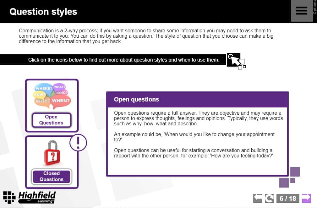 Whether it’s face-to-face verbal communication in the office, or non-verbal communication like a quick email to a customer, getting the right message to the right person can be vital. Highfield e-learning’s Short Course in Communication is ideal for all levels of employee within a business and as part of the induction process for new employees.