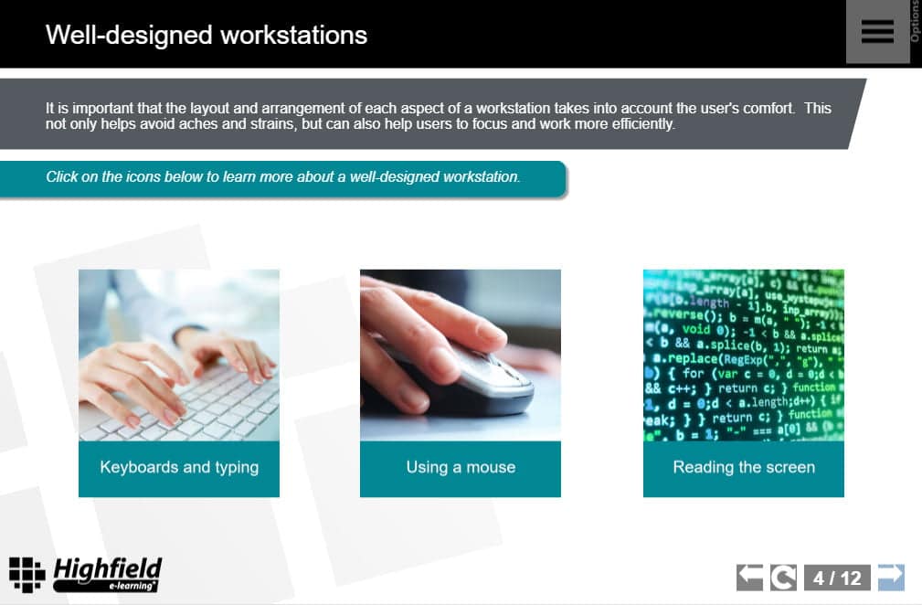 expand_moreHighfield’s Display Screen Equipment (DSE) Short Course is designed to ensure that users of DSE set up their work stations effectively and ergonomically, avoiding the health risks associated with their use.
