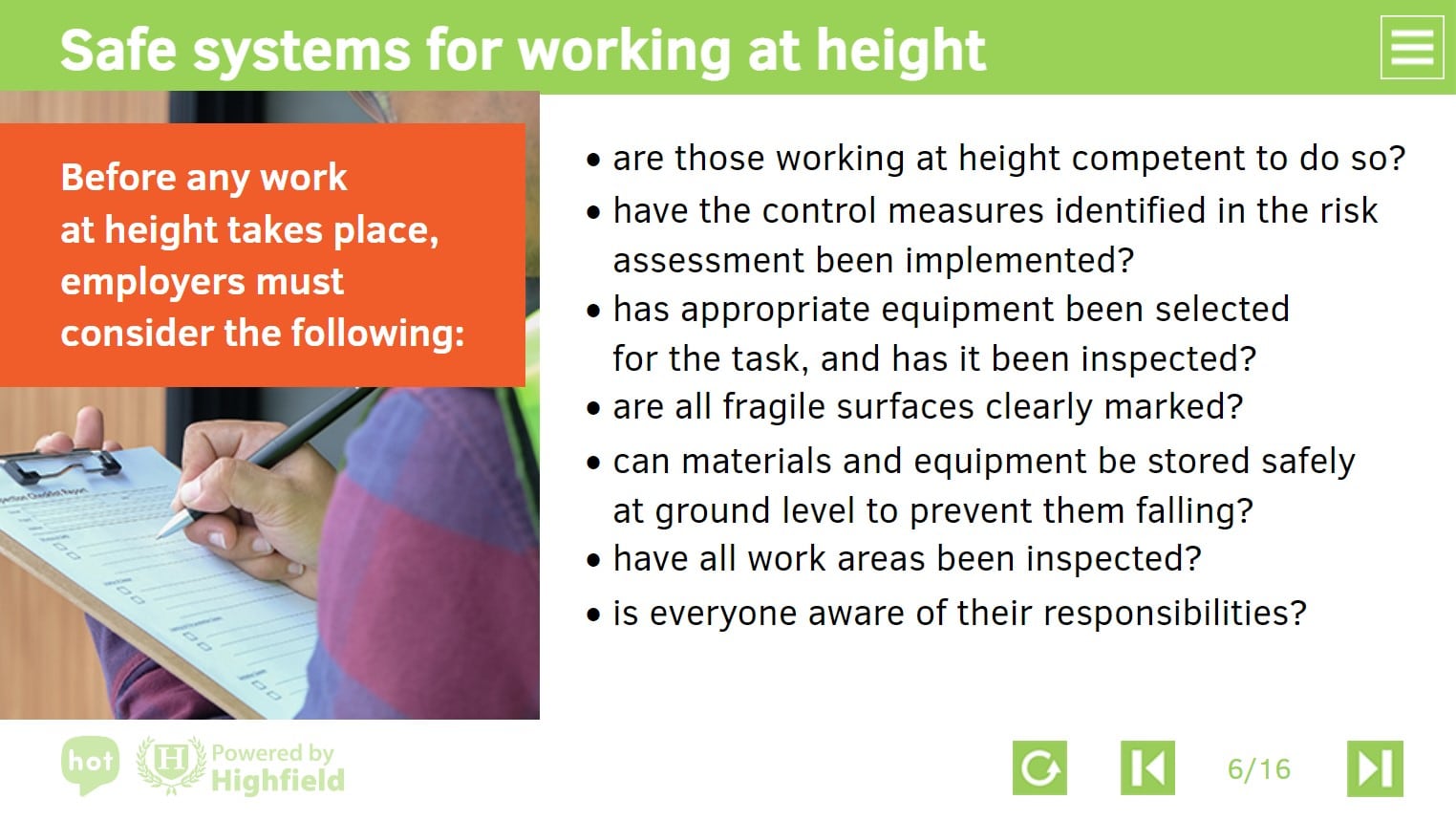 - Planning work at height